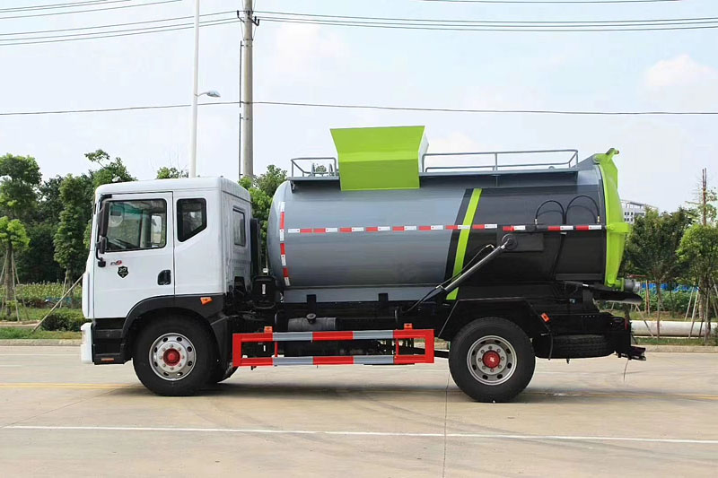東風D9餐廚(泔水)垃圾車:又稱泔水車、廚余垃圾車、餐廚垃圾收集車,是垃圾車的一種,主要用于收集和運輸生活垃圾,食品垃圾(泔水)及城市淤泥的專用車輛。可配裝載不同規格的標準垃圾桶,廣泛應用在賓館、飯店、食堂、學校等單位的餐廚泔水處理。具有裝、卸垃圾自動化程度高、工作可靠、密封性好、裝載容積大、操作簡便、作業過程密閉,無污水泄露和異味的散發,環保性好等特點。
