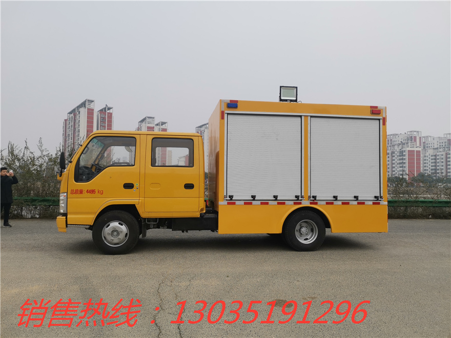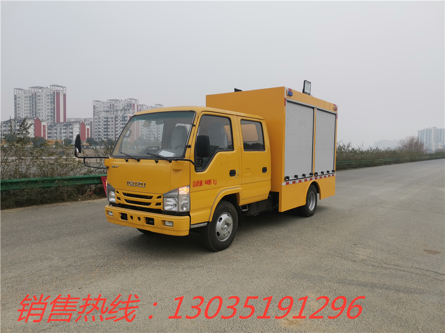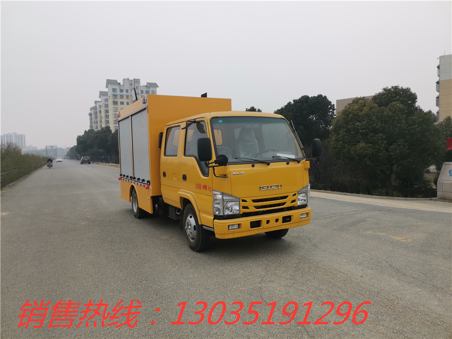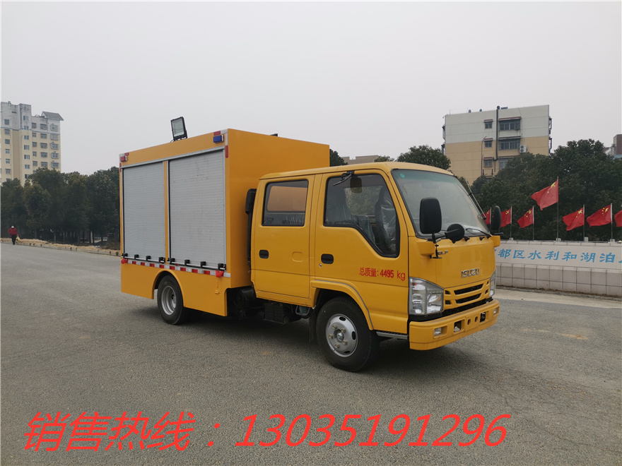 五十鈴1000立方應急救險車。該車機動性強,真正實現了快速移動應急排水,移動應急備用電源的概念,設備可滿足緊急排水搶險應急移發電的需要,真正的實現一車多用。整車外形尺寸(mm):5980≤長, 1960≤寬,2820≤高;總質量≤4495KG;最高車速≤105km/h(提供質量證明書)