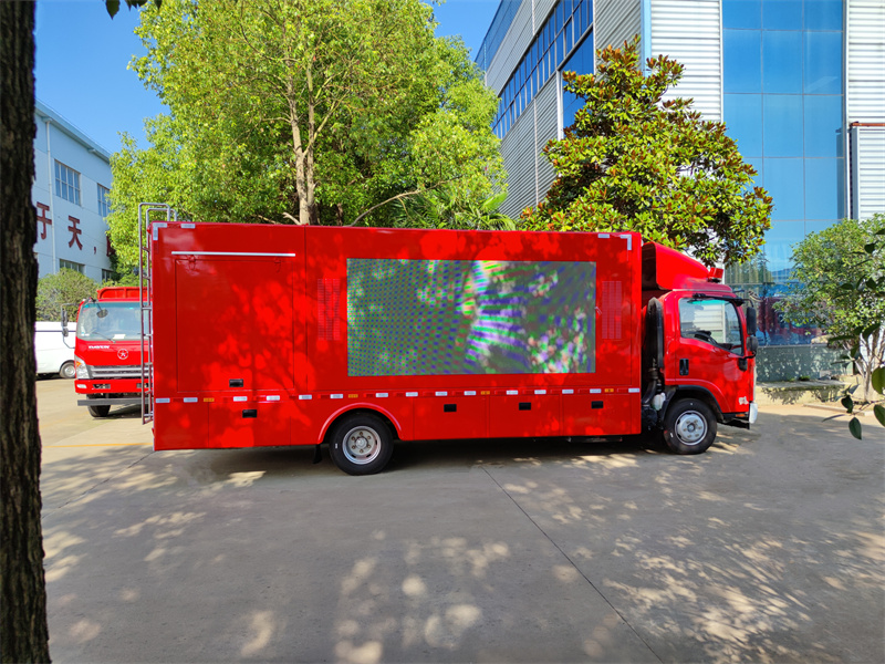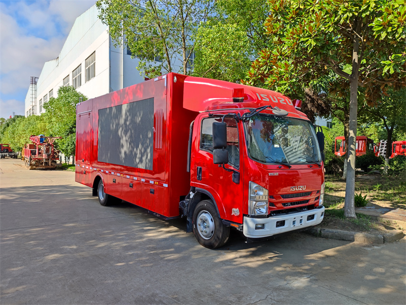 五十鈴工程救險宣傳車是一款多功能專用車輛,車身兩側是用于宣傳的LED全彩屏,可以播放各種宣傳片和視頻,還有配套的音箱,可以圖文并茂.車箱內還有發電機,排水泵,救險專用工具.用于應急排水和救援。
