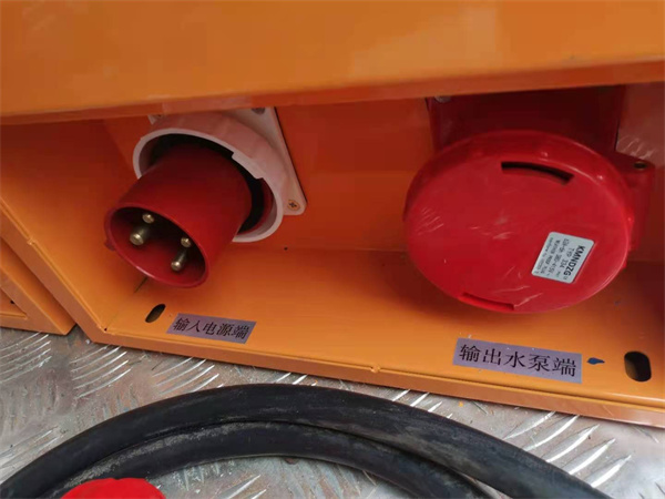 當水泵及排水管鋪設好后,將水泵放入水中,后接水泵電源接頭插入控制柜水泵端口;(見示圖)