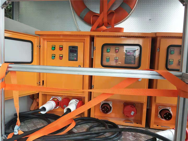 注意:使用車輛機組發(fā)電時將市電閘刀關(guān)閉,使用市電時必須將機組接入閘刀關(guān)掉,防止將機組線圈燒毀。