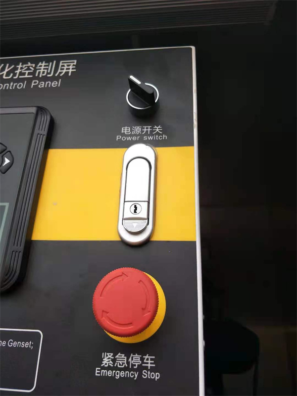 將以上做好后,我們啟動發(fā)電機組,將發(fā)電機組DC24V啟動電源開關(guān)打開(按手柄箭頭方向操作);(見示圖)