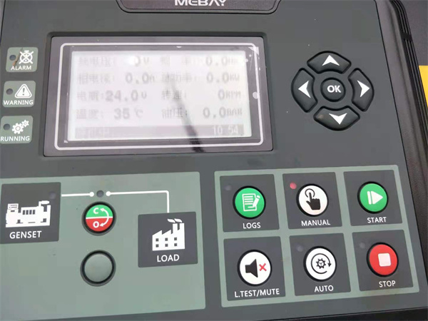 按“手形按鍵”MANUAL 鍵(手動模式),在按START鍵啟動發(fā)電機組等待發(fā)電機組運行正常后在進行下步操作;