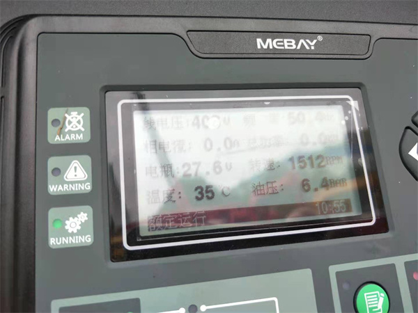 打開發(fā)電機組控制屏電源開關(guān),這時屏幕會亮(見示圖)